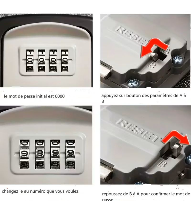 boîte à clés entièrement métallique, une version améliorée de la boîte à clés en plastique, plus sûre et plus durable antirouille, résistant à la scie, à la pression et aux leviers. Résistant aux intempéries et adapté à une utilisation intérieure et extérieure, le couvercle coulissant protège le cadran numérique.
